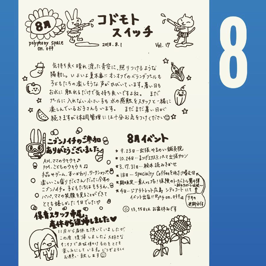 polyphony space on.off | ポリフォニースペースオンオフ | 子どもと一緒にいながら自分時間を*広島の託児付きリフレッシュ空間・コワーキングスペース・シェアスペース・レンタルスペース・一時預かり保育 | 子連れでリフレッシュ*カフェのようにくつろぐ*親子イベントも